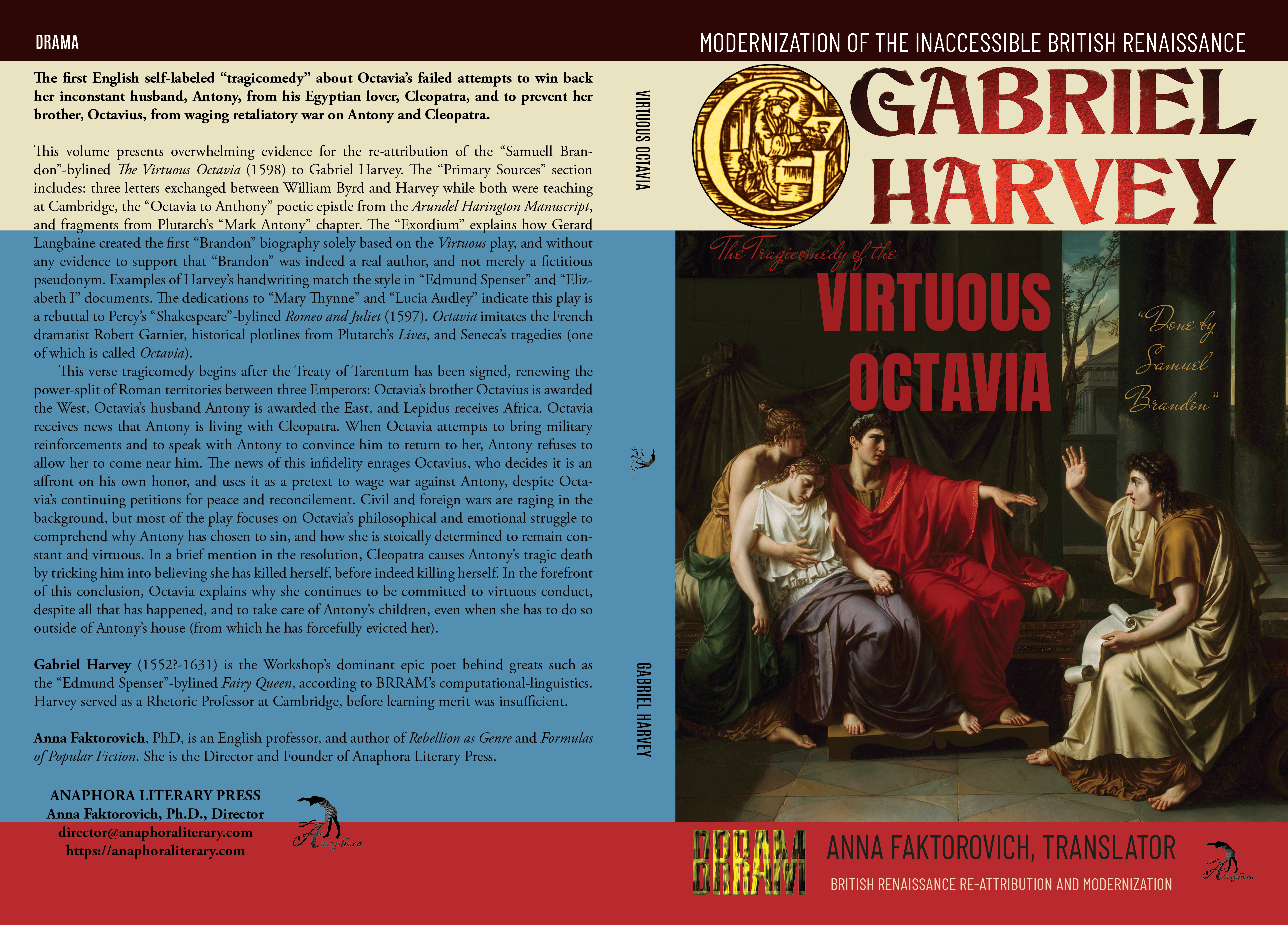 The BRRAM series solves most of the previously critically discussed mysteries concerning the authorship of British Renaissance texts (including the “William Shakespeare” and 122 other bylines) by applying to 303 texts a newly invented for this study computational-linguistics method that uses a combination of 27 different tests. This testing derived that six ghostwriters wrote all of these works: Richard Verstegan, Josuah Sylvester, Gabriel Harvey, Benjamin Jonson, William Byrd and William Percy. This computational method, together with structural, biographical and various other attribution approaches that led to the attribution conclusions, are discussed in the Re-Attribution of the British Renaissance Corpus. A larger portion of this series are the volumes in the Modernization of the Inaccessible British Renaissance section, which test the quantitative attribution-conclusions by closely analyzing and explaining the contents of individual re-attributed texts. The modernized works are uniquely consequential in explaining the revised history of this period, and yet have never been translated into Modern English before. Some of these texts were initially anonymous, others were self-attributed by the ghostwriters, and yet others were credited in bylines to pseudonyms or ghostwriting-contractors. The annotations to each of their translations provide thousands of new confirming clues of shared authorship within a given authorial-signature. Even without this history-changing attribution evidence, these are neglected texts that are here edited for the first time to allow their beauty and intelligence to shine so that readers can see how they rival the standard “Shakespeare” canon. This series is cataloged in the World Shakespeare Bibliography and in the Play Index (EBSCO). A few pieces out of BRRAM have been published in scholarly journals. “Manipulation of Theatrical Audience-Size: Nonexistent Plays and Murderous Lenders” was published in Critical Survey, Issue 34.1, Spring 2022. “‘Michael Cavendish’s’ 14 Airs in Tablature to the Lute (1598)” was published in East-West Cultural Passage, Volume 22, Issue 2, December 2022. The Journal of Information Ethics published two articles on Faktorovich’s re-attribution method: “Publishers and Hack Writers: Signs of Collaborative Writing in the ‘Defoe’ Canon” (Fall 2020) and “Falsifications and Fabrications in the Standard Computational-Linguistics Authorial-Attribution Methods: A Comparison of the Methodology in ‘Unmasking’ with the 28-Tests” (Spring 2022). In 2023, Faktorovich began developing a new series that re-attributes British texts from the 18th and 19th centuries; the first article, “The New Stylometric Attribution Method Applied to Uncovering Widespread Canonical British Ghostwriting”, out of the first volume, Introduction to Stylometry for Attribution, has been accepted and is forthcoming in the South Atlantic Review (SAMLA) in December 2024. This Re-Attribution series’ claim that William Percy is the main tragedian behind the “Shakespeare” byline is cited on Wikipedia, as this is the first time he has been awarded this honor (together with Harvey, Byrd and Sylvester). And a detailed discussion, with 1,741 comments, about the intricacies of this computational-linguistic method and various findings took place on LibraryThing.