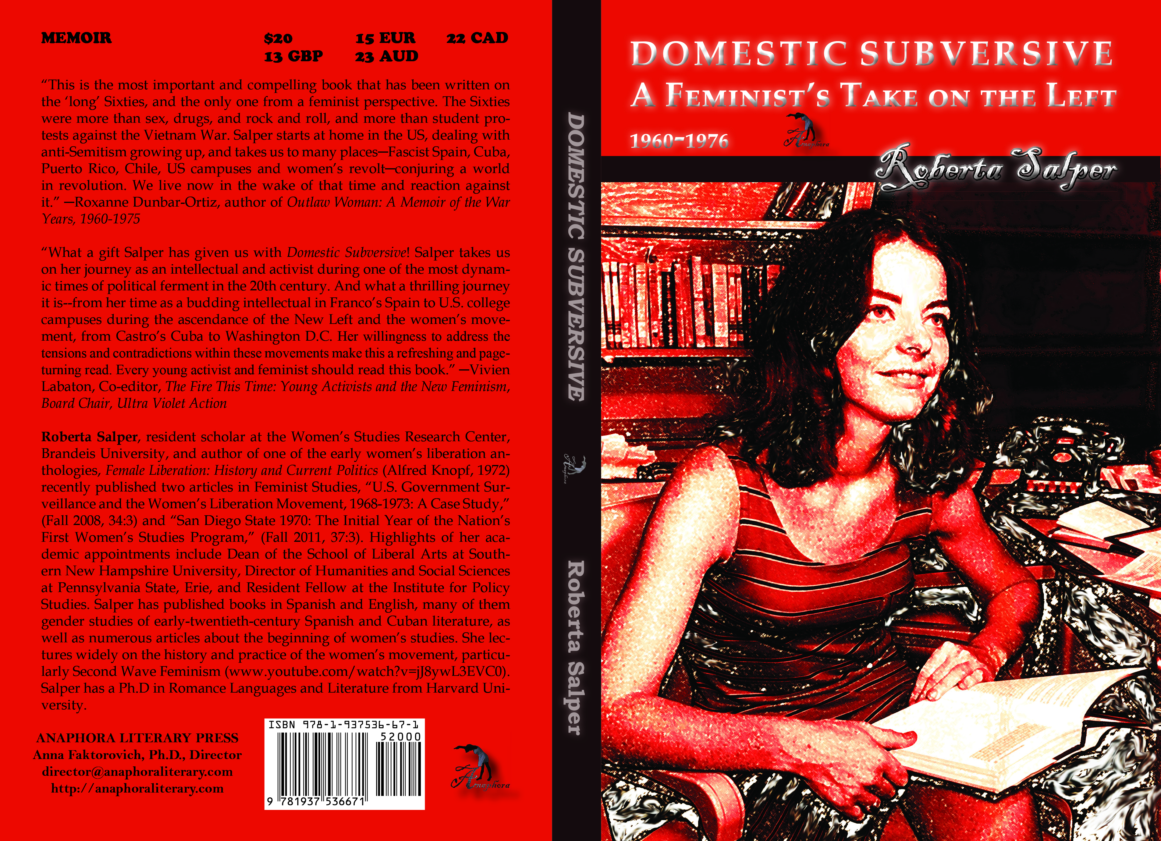 Domestic Subversive: A Feminist’s Take on the Left 1960-1976 is an intimate, riveting memoir about the making of a political radical during the upheaval of the 1960s. It is both a personal journey and an inside look at political movements that changed the world. We see Salper first in fascist Spain, next in the heart of the New Left, the early Women’s Liberation Movement, and the founding of Women’s Studies. Finally she is engaged in third world liberation struggles in Cuba, Puerto Rico, Chile and the United States. As a Harvard-educated scholar, Roberta Salper was destined for a distinguished academic career. Instead she opted for a life of risk-taking, personally as well as professionally. Salper offers a unique look at marriage and family life within Spain’s fascist dictatorship before she decides to “go it alone” and in 1974 becomes a rare example of the single professional mother.