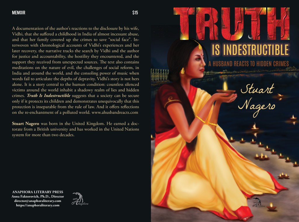 Truth Is Indestructible: A Husband Reacts to Hidden Crimes: (Nonfiction—Biography & Autobiography—Personal Memoirs; Nonfiction—Philosophy—Good & Evil; Softcover: $15, 54pp, 6X9”: 979-880928-426-4; Kindle EBook: $2.99; Release: May 1, 2022): documents the author’s reactions to the disclosure by his wife, Vidhi, that she suffered a childhood in India of almost incessant abuse, and that her family covered up the crimes to save “social face”. Interwoven with chronological accounts of Vidhi’s experiences and her later recovery, the narrative tracks the search by Vidhi and the author for justice and accountability, the hostility they encountered, and the support they received from unexpected sources. The text also contains meditations on the nature of evil, the challenges of social reform, in India and around the world, and the consoling power of music when words fail to articulate the depths of depravity. Vidhi’s story is not hers alone. It is a story central to the human condition: countless silenced victims around the world inhabit a shadowy realm of lies and hidden crimes. Truth Is Indestructible suggests that a society can be secure only if it protects its children and demonstrates unequivocally that this protection is inseparable from the rule of law. And it offers reflections on the re-enchantment of a polluted world. Website: www.ahusbandreacts.com