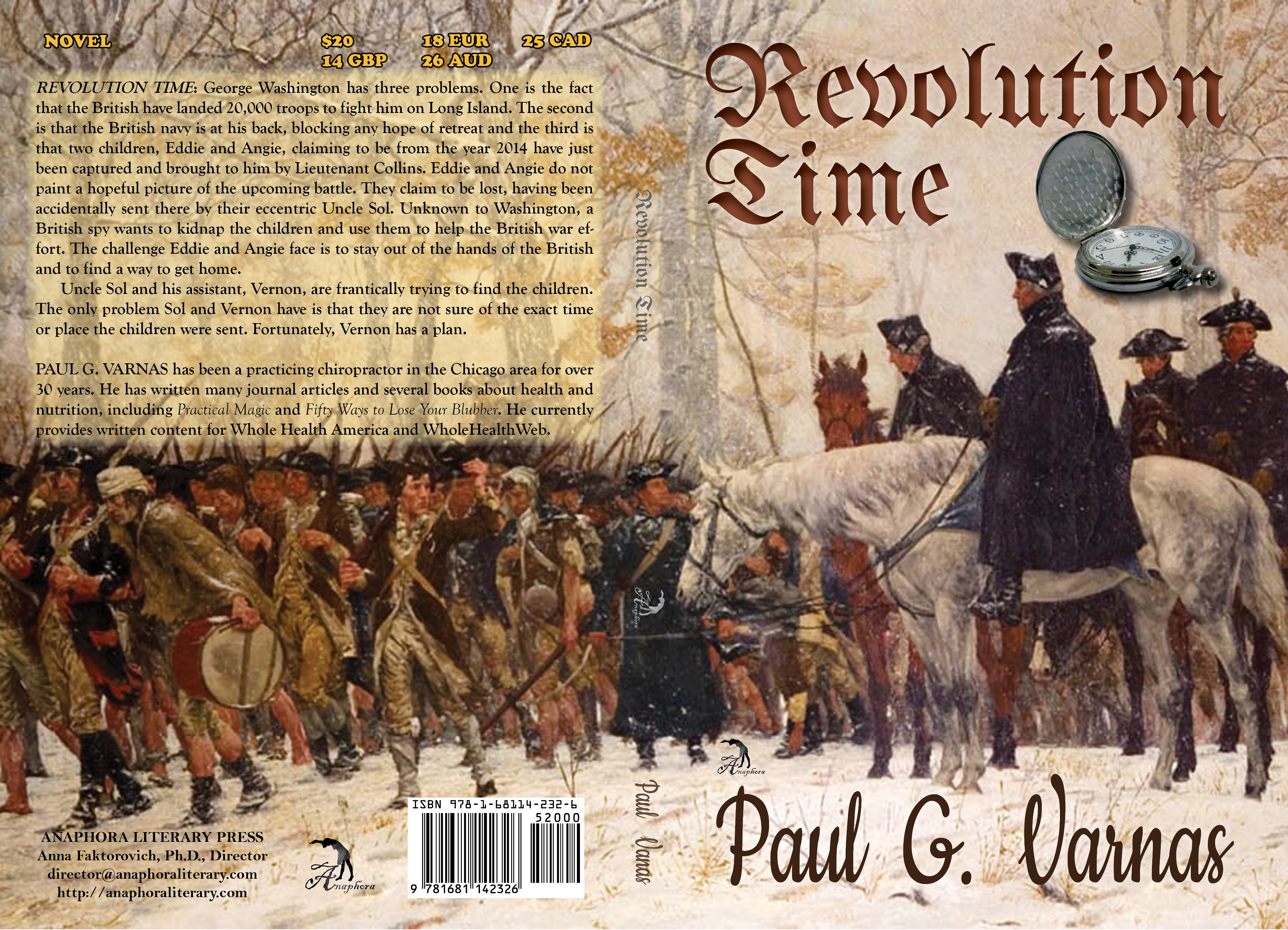Revolution Time: ($20, 242pp, 6X9″, Paperback ISBN-13: 978-1-68114-232-6, $35: Hardcover ISBN-13: 978-1-68114-241-8, $2.99: EBSCO EBook ISBN: 978-1-68114-258-6, LCCN: 2016901305, April 2016; Purchase on Amazon or Barnes & Noble): George Washington has three problems. One is the fact that the British have landed 20,000 troops to fight him on Long Island. The second is that the British navy is at his back, blocking any hope of retreat and the third is that two children, Eddie and Angie, claiming to be from the year 2014 have just been captured and brought to him by Lieutenant Collins. Eddie and Angie do not paint a hopeful picture of the upcoming battle. They claim to be lost, having been accidentally sent there by their eccentric Uncle Sol. Unknown to Washington, a British spy wants to kidnap the children and use them to help the British war effort. The challenge Eddie and Angie face is to stay out of the hands of the British and to find a way to get home. Uncle Sol and his assistant, Vernon, are frantically trying to find the children. The only problem Sol and Vernon have is that they are not sure of the exact time or place the children were sent. Fortunately, Vernon has a plan.