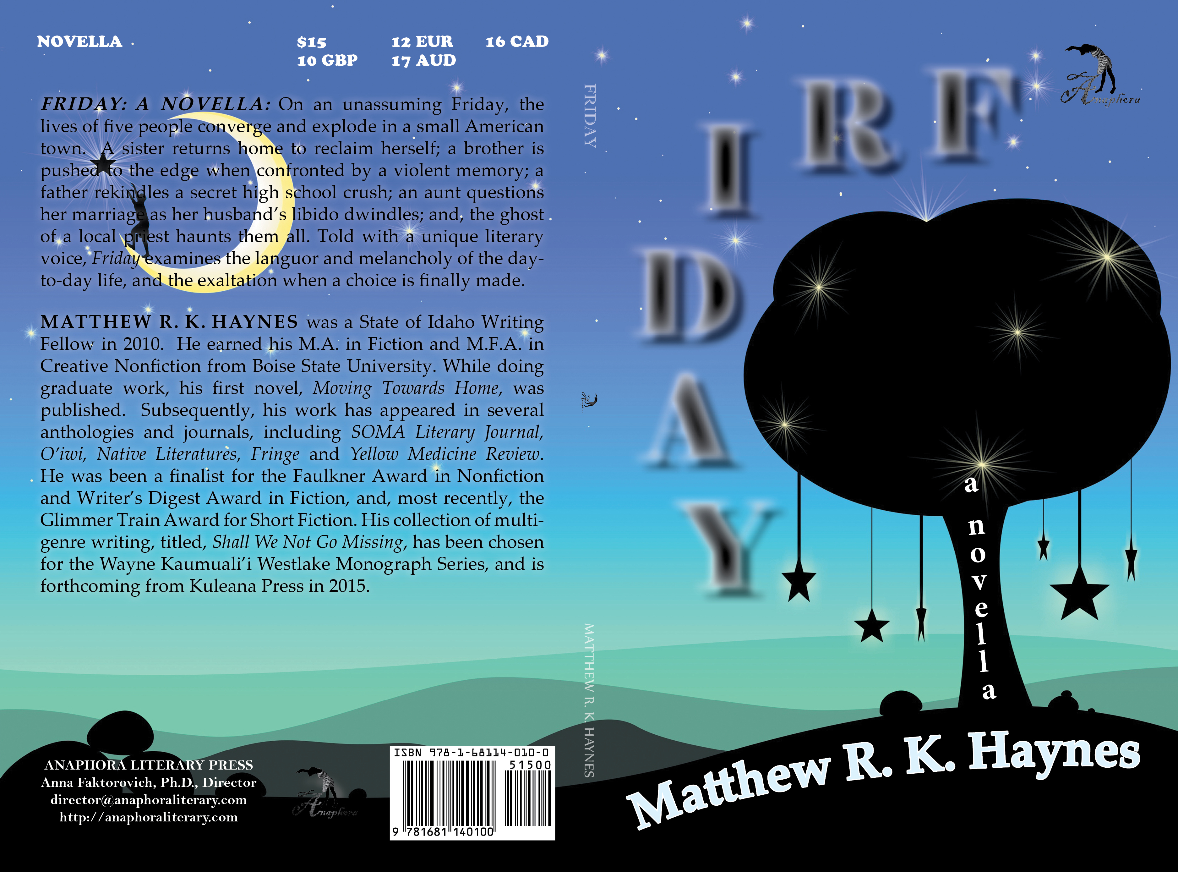 Matthew R. K. Haynes was a State of Idaho Writing Fellow in 2010. He earned his M.A. in Fiction and M.F.A. in Creative Nonfiction from Boise State University. While doing graduate work, his first novel, Moving Towards Home, was published. Subsequently, his work has appeared in several anthologies and journals, including SOMA Literary Journal, O’iwi, Native Literatures, Fringe and Yellow Medicine Review. He was been a finalist for the Faulkner Award in Nonfiction and Writer’s Digest Award in Fiction, and, most recently, the Glimmer Train Award for Short Fiction. His collection of multi-genre writing, titled, Shall We Not Go Missing, has been chosen for the Wayne Kaumuali’i Westlake Monograph Series, and is forthcoming from Kuleana Press in 2015.