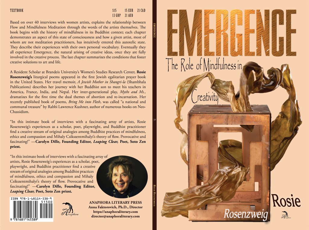 “In this intimate book of interviews with a fascinating array of artists, Rosie Rosenzweig’s experiences as a scholar, poet, playwright, and Buddhist practitioner find a creative stream of original analogies among Buddhist practices of mindfulness, ethics and compassion and Mihaly Csikszentmihalyi’s theory of flow. Provocative and fascinating!” —Carolyn Dille, Founding Editor, Leaping Clear, Poet, Soto Zen priest.