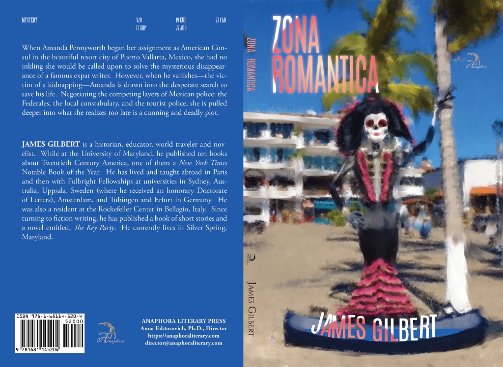Zona Romantica: (Softcover: $20, 176pp, 6X9”: ISBN: 978-1-68114-520-4; Hardcover: $35: ISBN: 978-1-68114-521-1; Ebook: $2.99: ISBN: 978-1-68114-522-8; Amazon Soft Cover: ISBN 979-8-596001-90-7; Kindle eBook: ASIN: B08T8GFBYG; LCCN: 2019918718; Edited by Anna J. Chavez; Release: May 19, 2020; Fiction—Mystery & Detective—Hard-Boiled; Purchase on Amazon or Barnes & Noble): When Amanda Pennyworth began her assignment as American Consul in the beautiful resort city of Puerto Vallarta, Mexico, she had no inkling she would be called upon to solve the mysterious disappearance of a famous expat writer. However, when he vanishes—the victim of a kidnapping—Amanda is drawn into the desperate search to save his life. Negotiating the competing layers of Mexican police: the Federales, the local constabulary, and the tourist police, she is pulled deeper into what she realizes too late is a cunning and deadly plot.