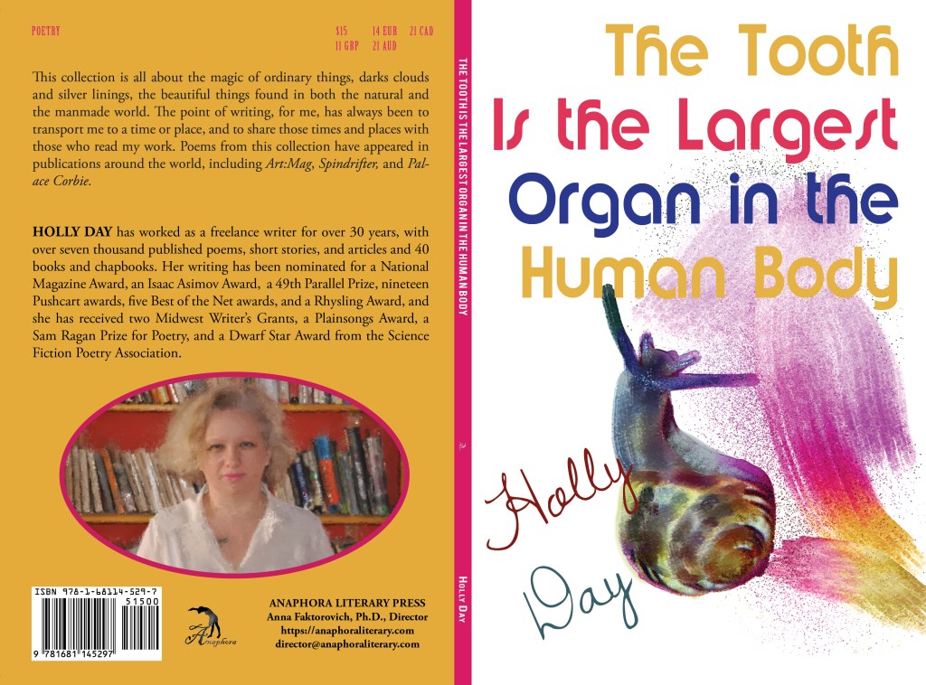 Holly Day has worked as a freelance writer for over 30 years, with over 7,000 published poems, short stories, and articles and 40 books and chapbooks. Her writing has been nominated for a National Magazine Award, an Isaac Asimov Award, a 49th Parallel Prize, nineteen Pushcart awards, five Best of the Net awards, and a Rhysling Award, and she has received two Midwest Writer’s Grants, a Plainsongs Award, a Sam Ragan Prize for Poetry, and a Dwarf Star Award from the Science Fiction Poetry Association.