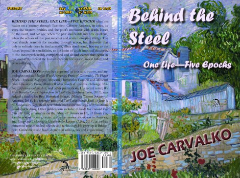 Behind the Steel: One Life—Five Epochs: ($15, 96pp, 6X9″, ISBN: 978-1-68114-005-6, Hardcover ISBN: 978-1-68114-113-8, LCCN: 2014922633, December 2014; Purchase on Amazon or Barnes and Noble): takes the reader on a journey through Twentieth Century America, its cities, its wars, the western prairies, and the poet’s encounter with death, losses of the heart, and old age, when the past stands still and time quickens, when the echoes of the past ricochet and scatter into pure energy. The poet sharply searches for meaning through action, but discovers that only in solitude does he find answers, albeit conditional, bowing to the forces beyond his sensibilities, to the limits of a self-imposed blindness, to the incomprehensibly complicated and absurd events that occur in our midst, yet exceed the human capacity for reason, moral belief and even suffering.