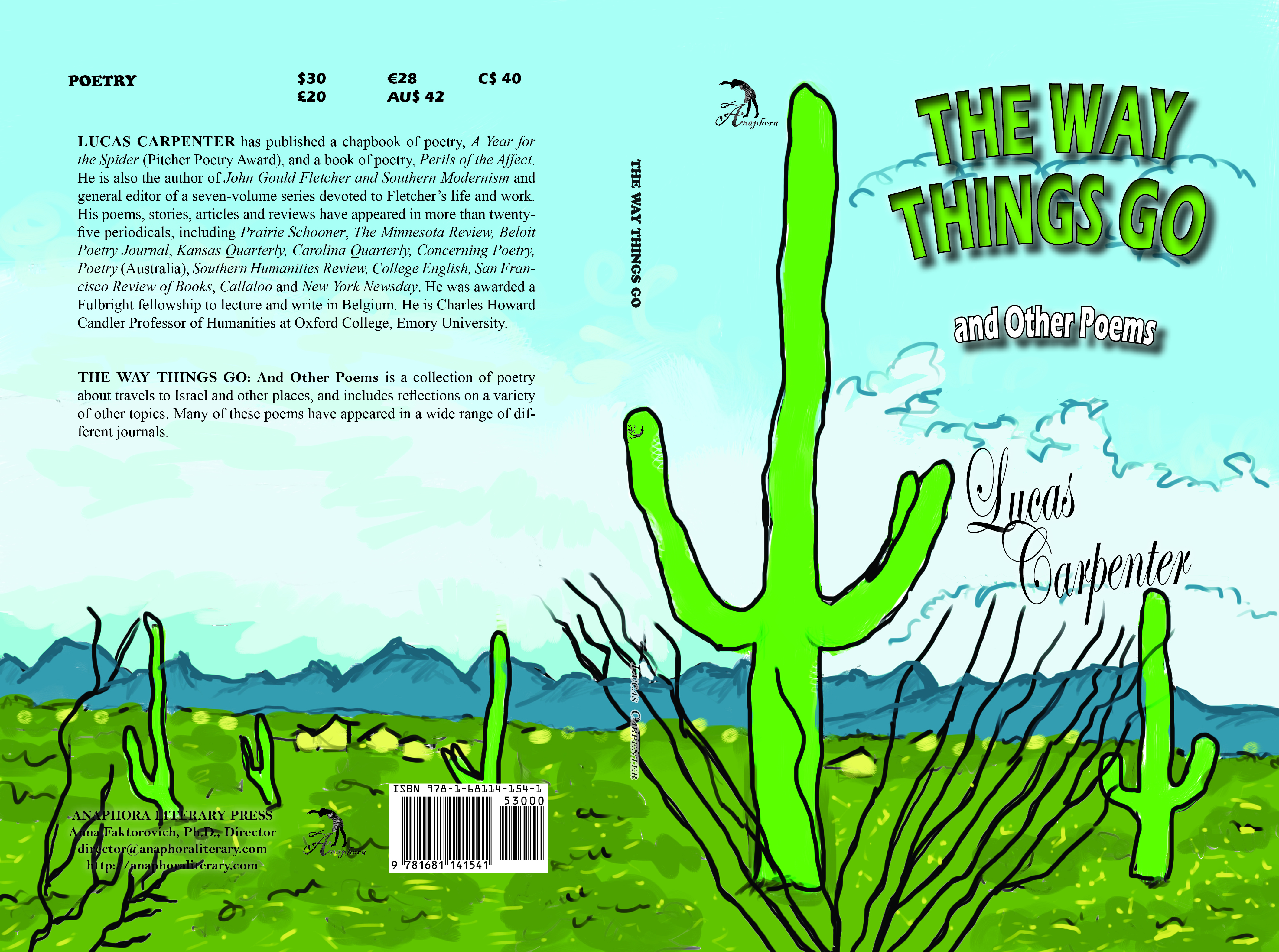 The Way Things Go: And Other Poems ($15 – Click to Purchase, ISBN: 978-1-937536-42-8, Hardcover ISBN: 978-1-68114-154-1, LCCN: 2013904200, 6X9″, 80pp): is a collection of poetry about travels to Israel and other places, and includes reflections on a variety of other topics. Many of these poems have appeared in a wide variety of different journals.