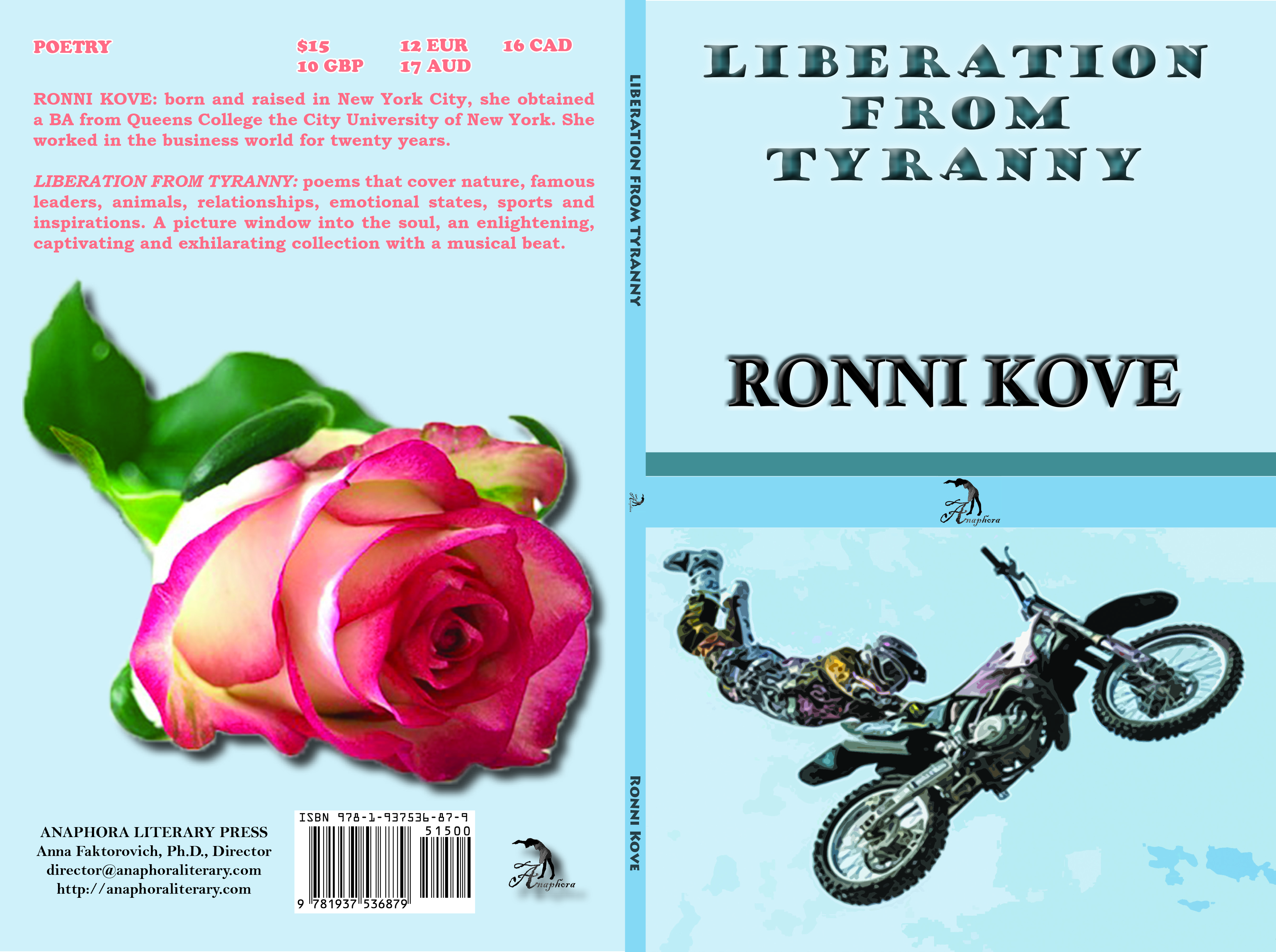 Ronni Kove: born and raised in New York City, she obtained a BA from Queens College the City University of New York. She worked in the business world for twenty years.