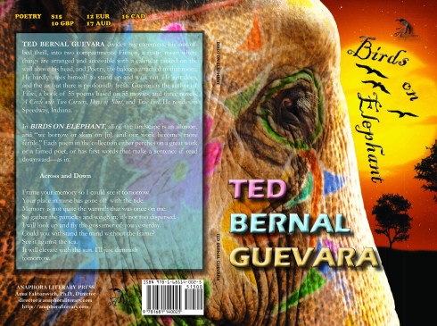 In Birds on Elephant ($15, 6X9″, 70pp, Print ISBN: 978-1-68114-002-5, Hardcover ISBN: 978-1-68114-111-4, EBook ISBN: 978-1-68114-084-1, LCCN: 2014959352; May 2015; Purchase on Amazon or Barnes and Noble), all of the landscape is an allusion, and “we borrow or skim on [it], and our work becomes more fertile.” Each poem in the collection either perches on a great work or a famed poet, or has first words that make a sentence if read downward—as in: