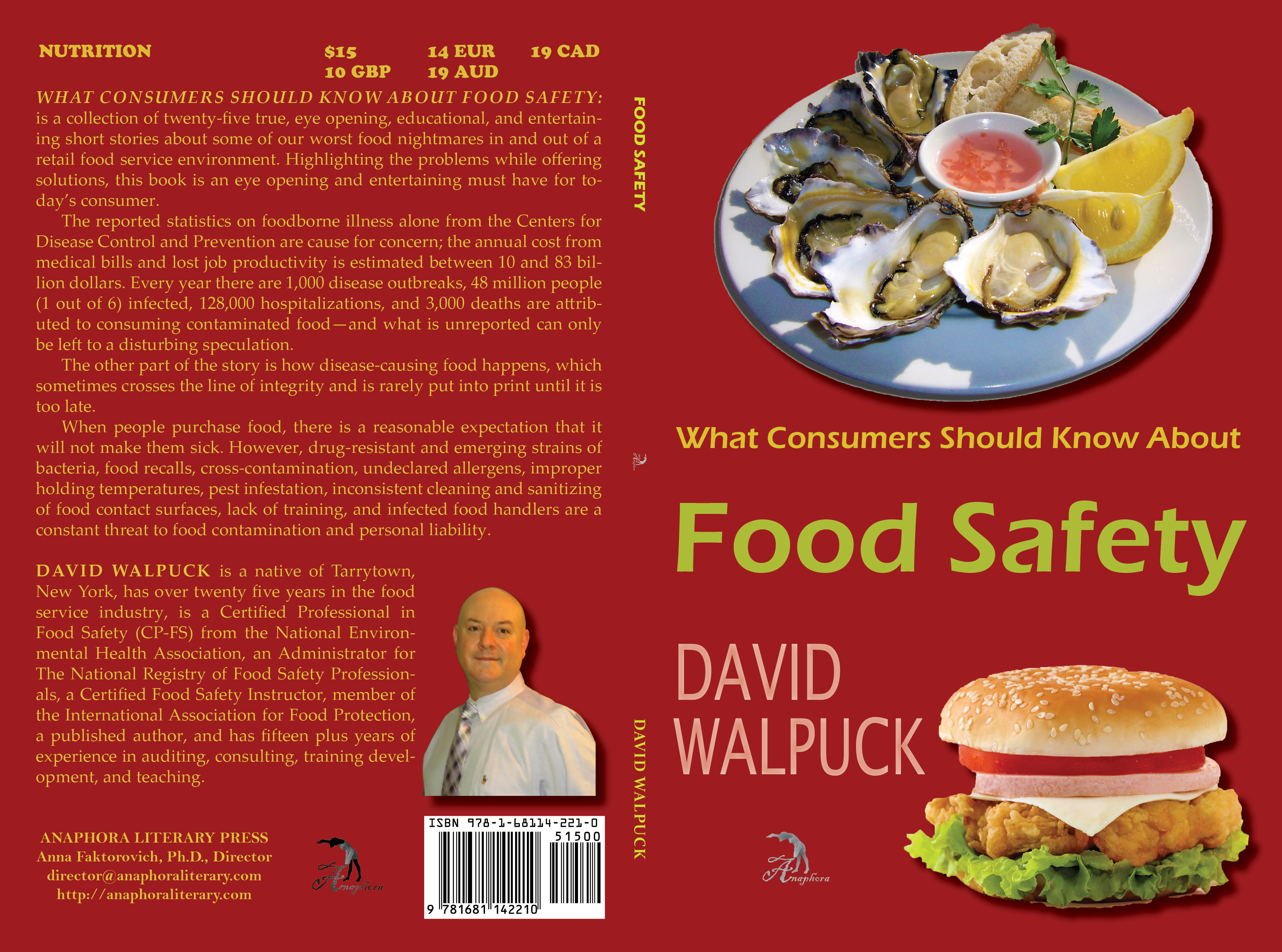What Consumers Should Know About Food Safety: ($15, 94pp, 6X9”, Print ISBN-13: 978-1-68114-221-0, $30: Hardcover ISBN 978-1-68114-262-3, $2.99: EBook ISBN-13: 978-1-68114-222-7, LCCN: 2015955497, 20 illustrations, May 2, 2016; Purchase on Amazon, Google Books or Barnes & Noble): is a collection of twenty-five true, eye opening, educational, and entertaining short stories about some of our worst food nightmares in and out of a retail food service environment. Highlighting the problems while offering solutions, this book is a must read for today’s consumer.